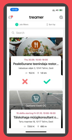 Treamer on tasuta äpp mis on saadaval nii iOS kui Android telefonile. Äpis on sul igal hetkel ligipääs kõikidele vabadele tööampsudele. Sa näed kohe nende eest makstavat tasu, tööülesandeid ja asukohta ning saad lihtsalt, vaid ühe klikiga kandideerida.