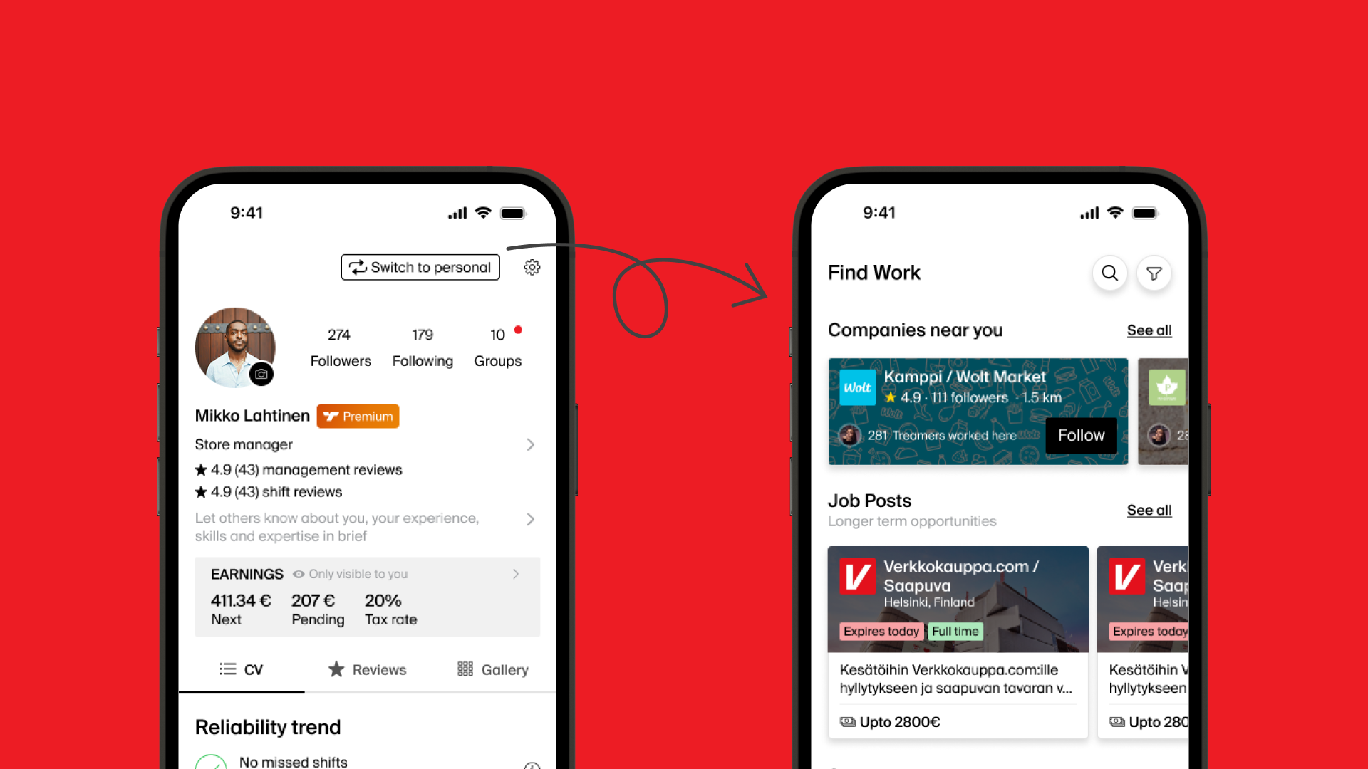 Treamerilla olemme aina uskoneet työkaluihin, jotka tekevät työstä inhimillisempää, joustavampaa ja palkitsevampaa. Tähän asti työnantajat ovat käyttäneet Treameria pääasiassa vuorojen julkaisuun, työntekijöiden palkkaamiseen ja tiimien hallintaan. Mutta tiedämme, että työnantajana oleminen ei määritä koko ammatillista identiteettiäsi. Moni teistä on myös työntekijöitä, johtajia, freelancereita ja aktiivisia ammattilaisia, jotka haluavat esitellä taitojaan, verkostoitua ja kehittää uraansa.